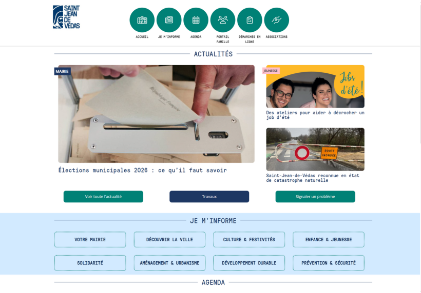 Design clair et accessible, axé sur l’information citoyenne et la valorisation du territoire, idéal pour les habitants et visiteurs en quête de services et d’informations pratiques.